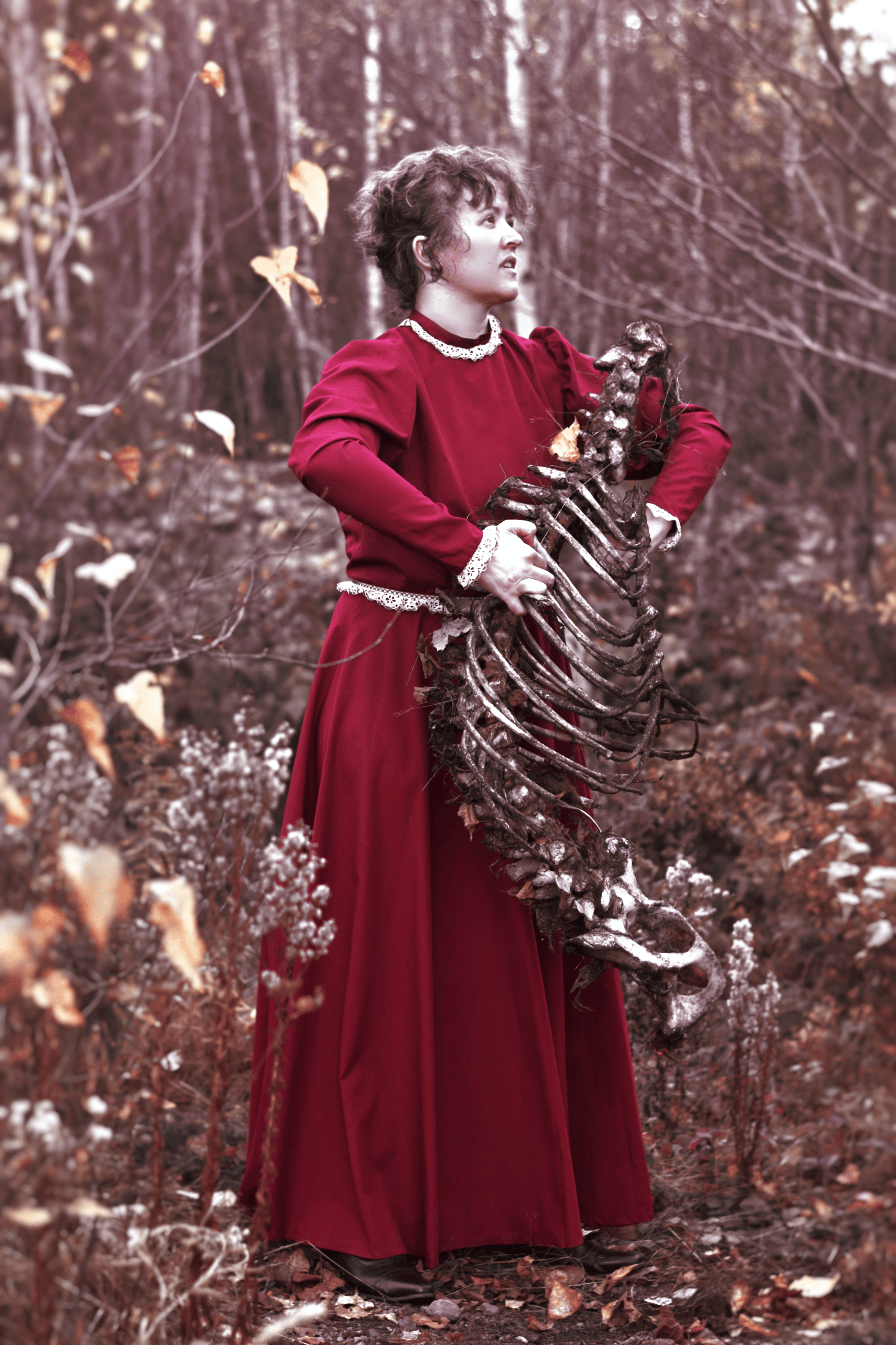 Print of a woman holding a deer carcass. Perfect for those who love the woods.
